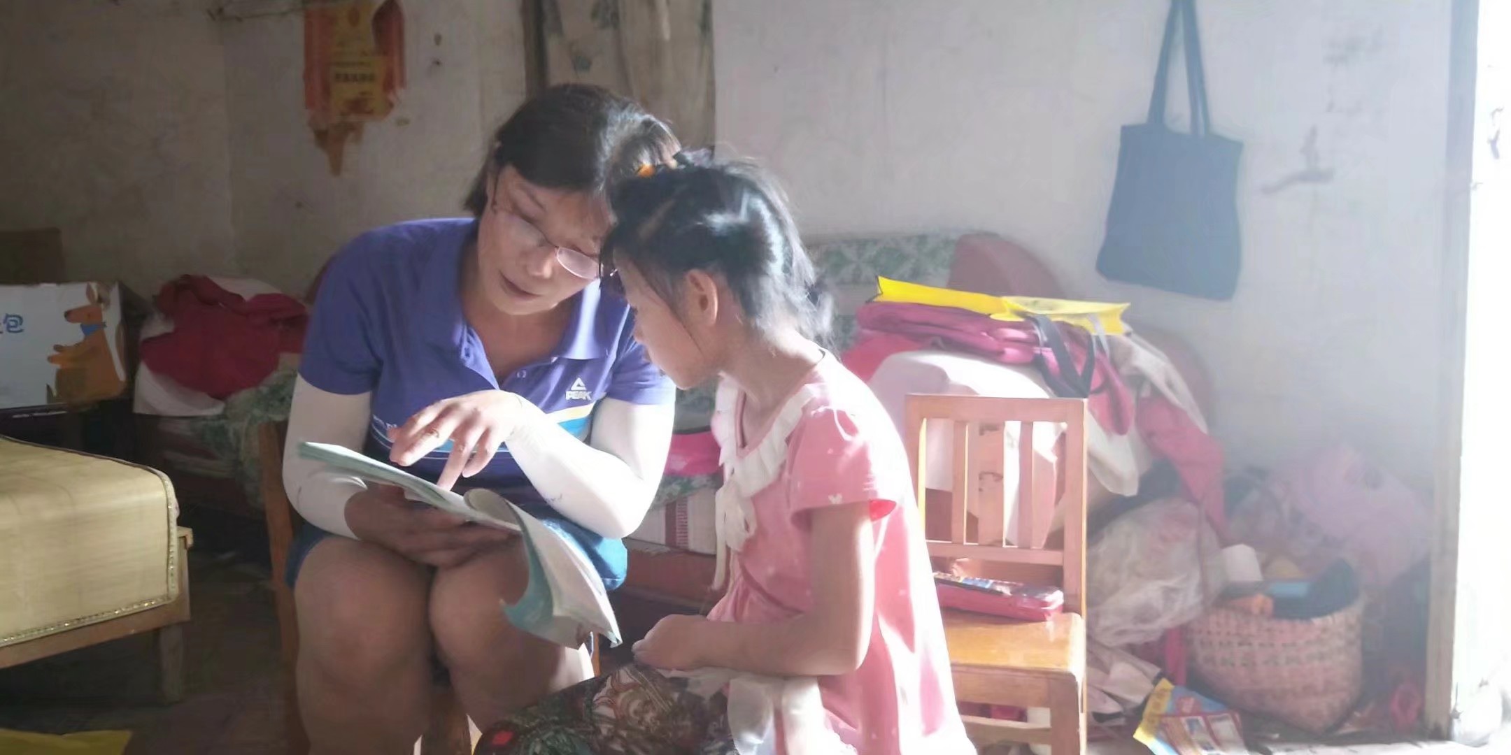 第一次见到小涵,是2018年夏天,小小的瘦瘦的,头发凌乱地扎在脑后,穿着皱巴巴的衣服,眼神里露出和年龄不相符的忧郁,拽着奶奶的衣角,胆怯地看着我们,然后很有礼貌地向我们问好。从看到她的第一眼,志愿者就喜欢上了这个可爱的小姑娘,拉着她的小手,摸着她的小脸,由于家庭条件不好,生活环境差,她的手上、脸上都被蚊虫叮咬,起了好几个大包,有的地方都溃烂了,我们心疼地眼泪直流。